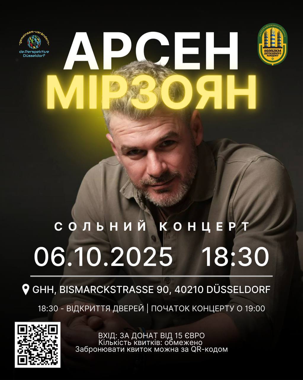 Запрошуємо тебе на особливий вечір — сольний концерт Арсена Мірзояна, заслуженого артиста України, співака й композитора, чиї пісні проникають у саме серце. Його голос — це щирість і сила, що надихає та об’єднує.
