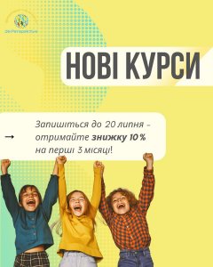 Зареєструйтесь до 20 липня та отримайте знижку 10 % на перші 3 місяці! Захопливі заняття для дітей та підлітків: Вокал Фортепіано…